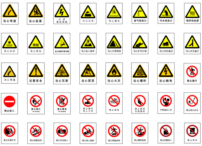 安全標識主要為警示類標志標語,主要作用為目視化警示管理
